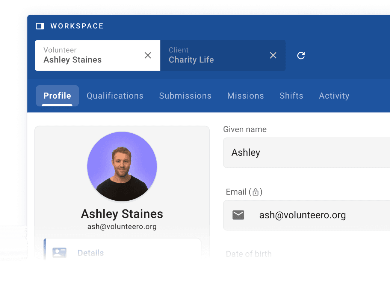 Keep detailed profiles for each volunteer, including activity log, basic info, tags, qualifications and more. Unlimited capacity ensures you never run out of space.