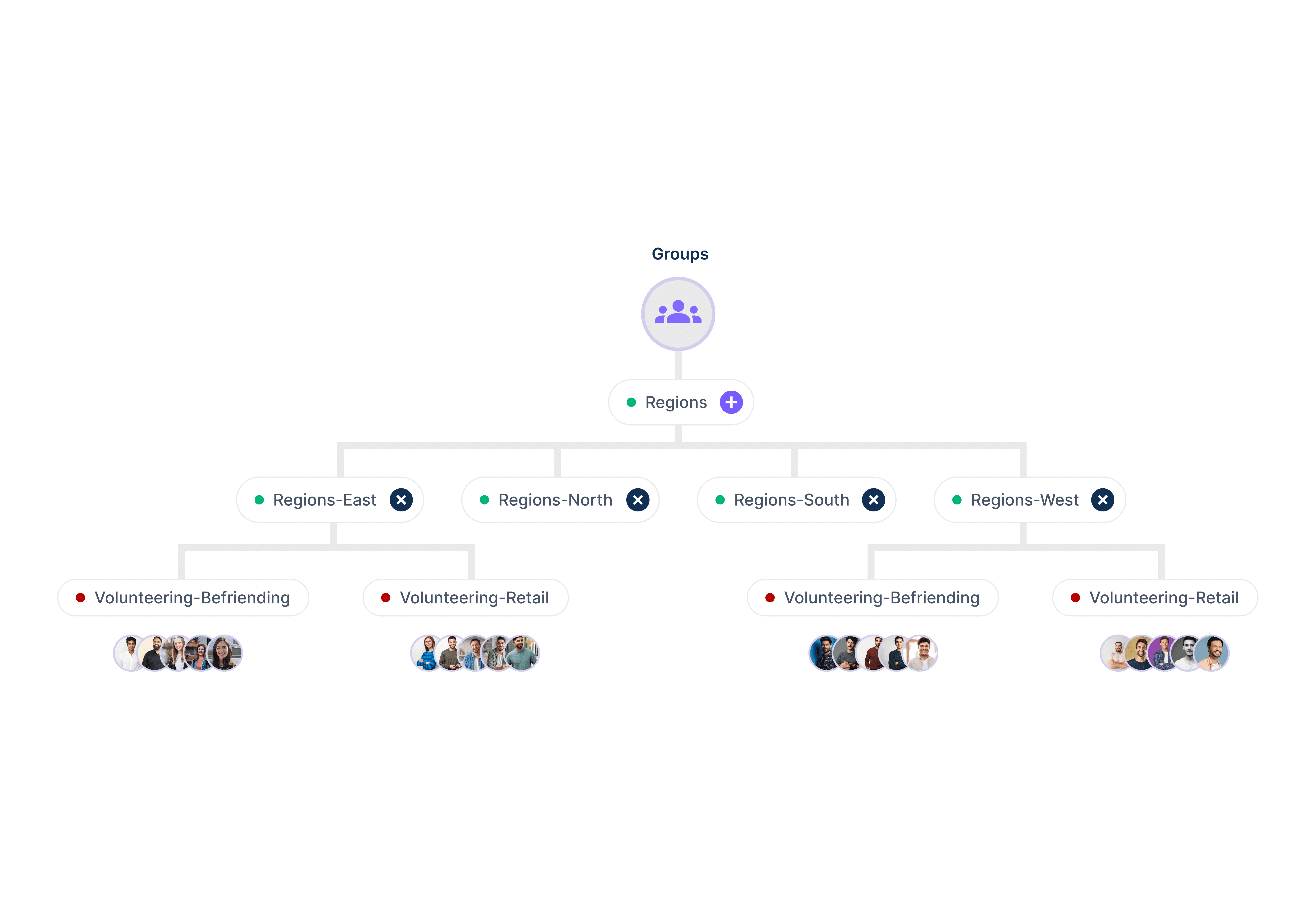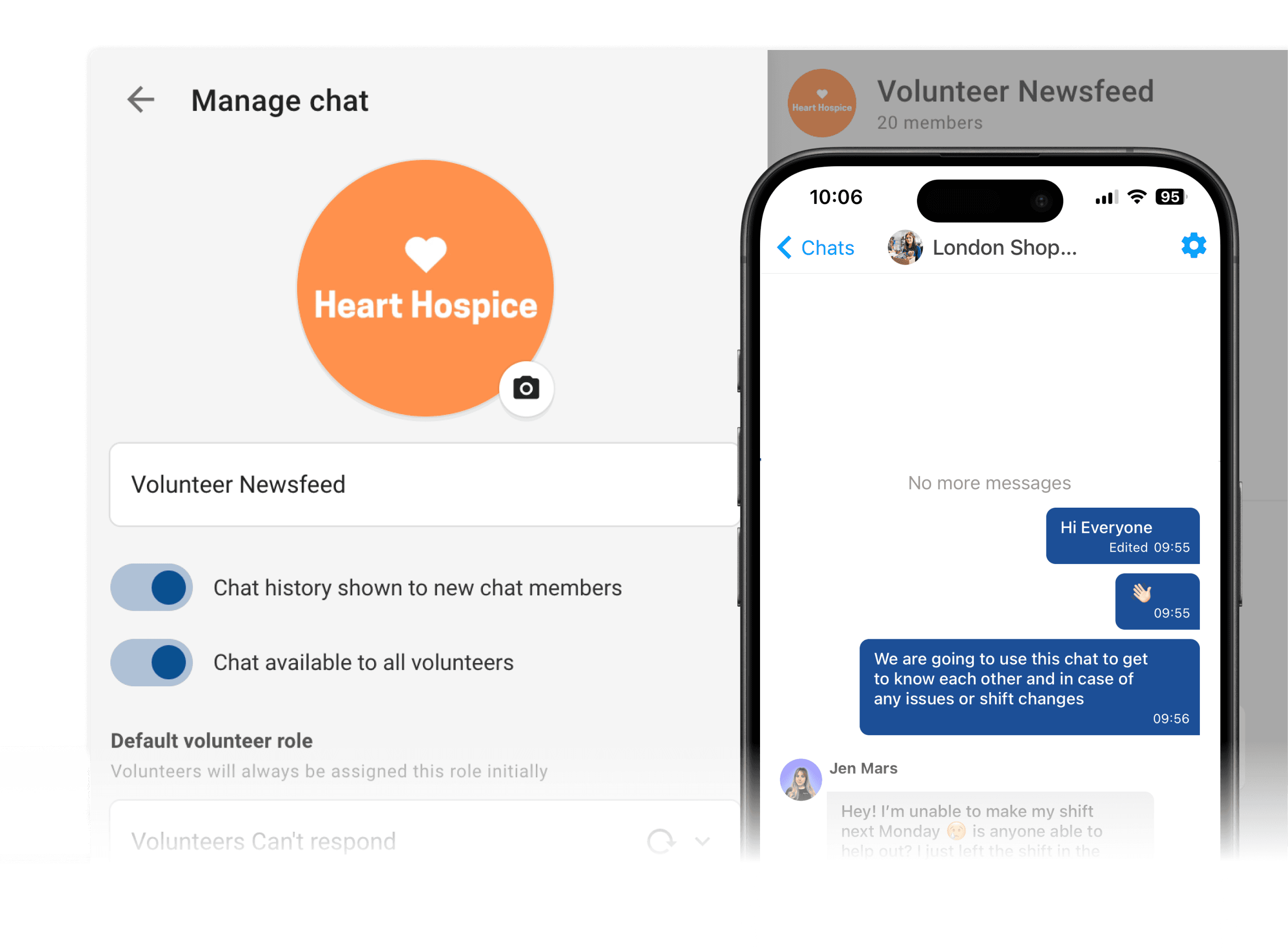 Organize volunteers into groups based on skills or roles. Restrict the activities and chat groups volunteers can access.