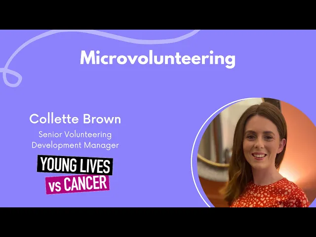 This session we will have a presentation and discussion on Micro and Fundraising Volunteering from Collette, Senior Volunteering Development Manager at Young Lives vs Cancer. Collette's role currently focuses on developing, consulting with and training volunteer managers to be the best that they can be to support volunteers at Young Lives vs Cancer.