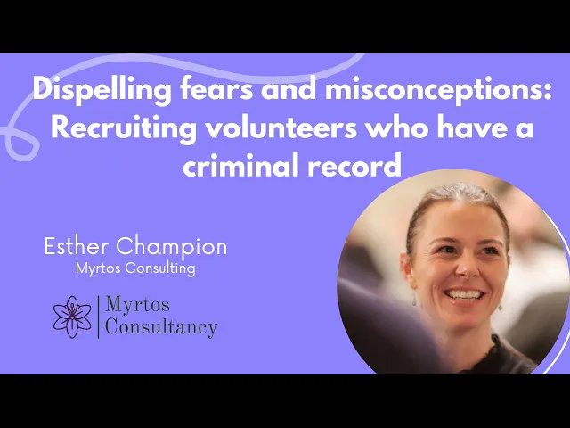 Join Esther Champion in this Lunch and Learn to give volunteer managers more confidence when it comes to hiring volunteers who have a criminal record.
